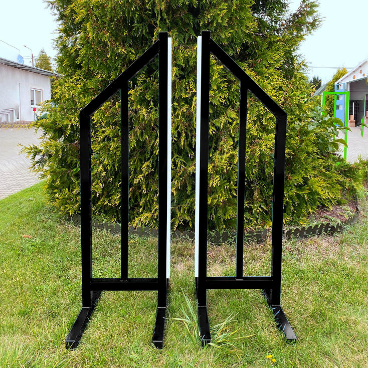 It's a lightweight construction made of aluminium. The Training Wings are solid and easy to move, store and transport. A double powder coating provides long lasting weather resistance against all elements. The sample product is a showcase of what is possible.